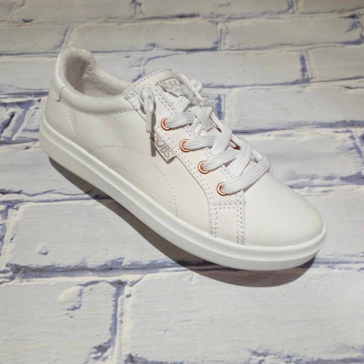 Cool casual style and easy wearing combine in BOBS from Skechers™ D'Vine. This solid-colored vegan design features a canvas upper with terry lining, tied-off laces and a cushioned Skechers Memory Foam™ insole.