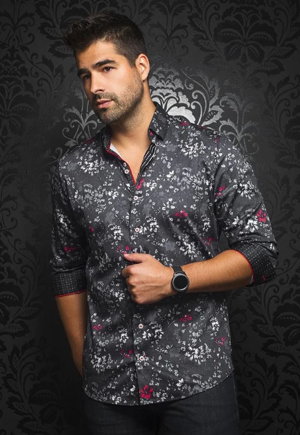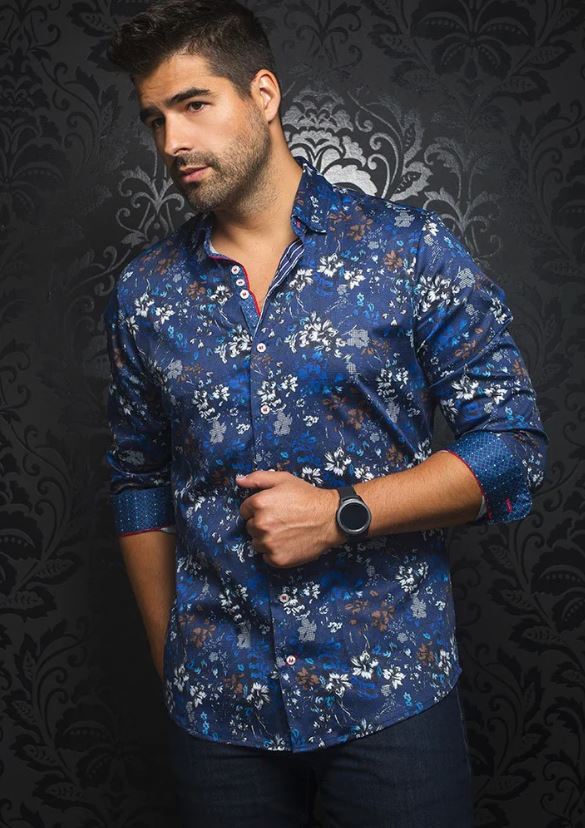 Men's casual dress shirt. Stand out with contrasting patterns and sophisticated details. Comfortable with high-end stretch cotton fabric.