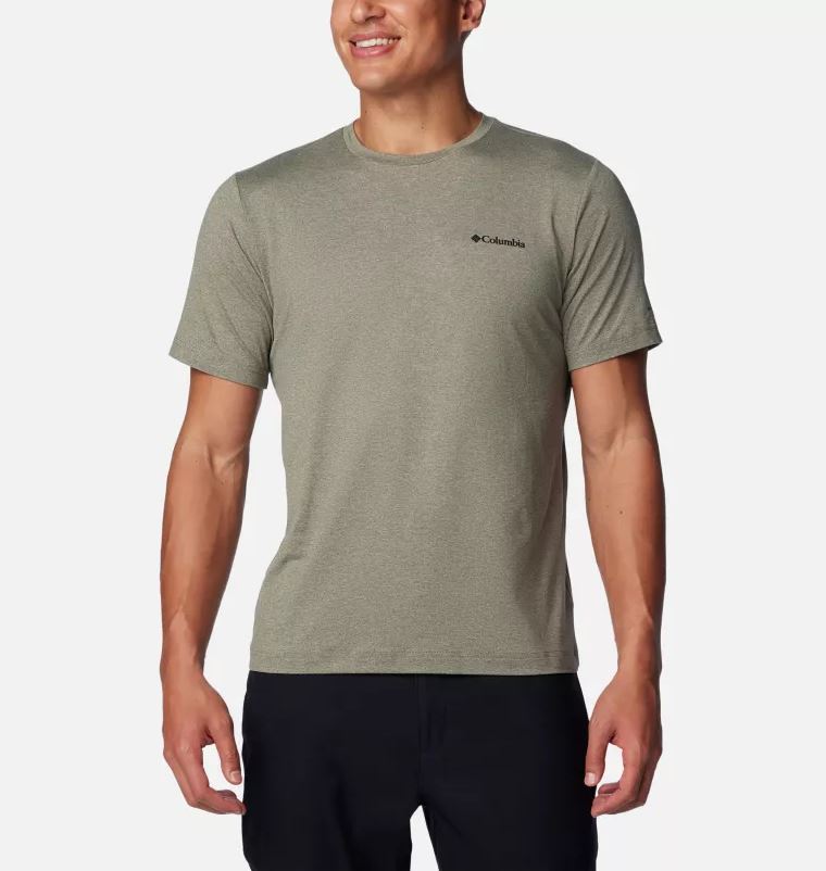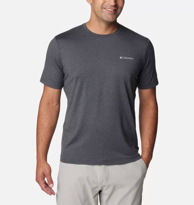 A comfy crewneck tee with sweat wicking and sun shielding fabric.
