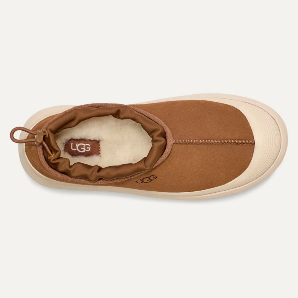 Who (and we can't stress this enough) wants to take a walk in the drizzle with us? We can always count on the Tasman Weather Hybrid to travel with us outdoors, even if its a little wet out there. Featuring waterproof suede and seam-sealed construction as well as our cozy UGGplush™ upcycled wool lining, the Tasman Weather Hybrid offers a light, slipper feel with an easy slip-on silhouette. The outsole is made from renewable, rainwater-nourished sugarcane and features a permanent galosh for wet conditions.