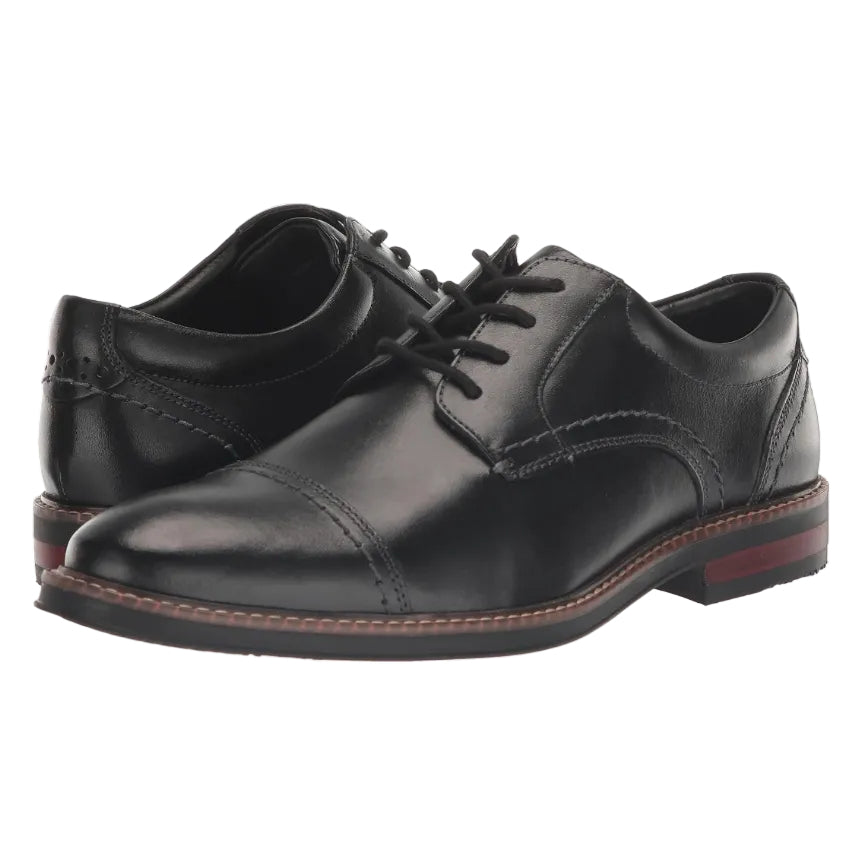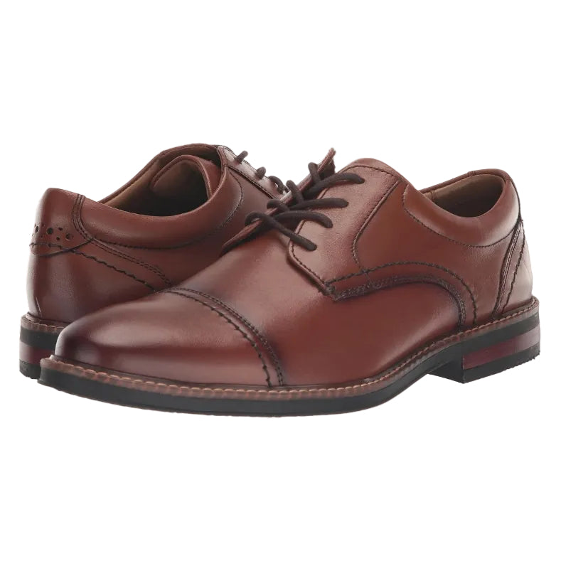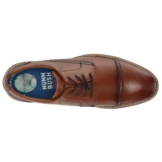 This classic oxford has been updated with a modern silhouette stacked heel and the comfort of an EVA footbed. Designed to wear with everything from your best suit to your favorite jeans the Men's Nunn Bush Calderone Plain Toe Oxford is a versatile addition to any collection. Leather upper in an oxford style with a plain toe. Breathable stretch textile linings for all-day comfort. Ultra-comfortable molded EVA footbed with Memory Foam and our signature Softgel heel pod that's anatomically designed to absorb the impact of each step and provide cushioning for all-day comfort. Lightweight rubber sole for superior shock absorption. Flex Technology for added flexibility and wide-range foot movement.
