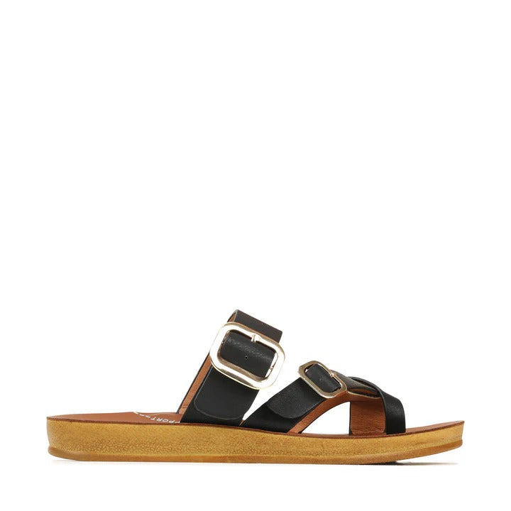 Look no further than DANY for your summer footwear needs! This slide sandal is not your average two-strap—it features eye-catching buckle details, a cross-over thong design and adjustable straps to give you the perfect fit. Shine in style - for any occasion!