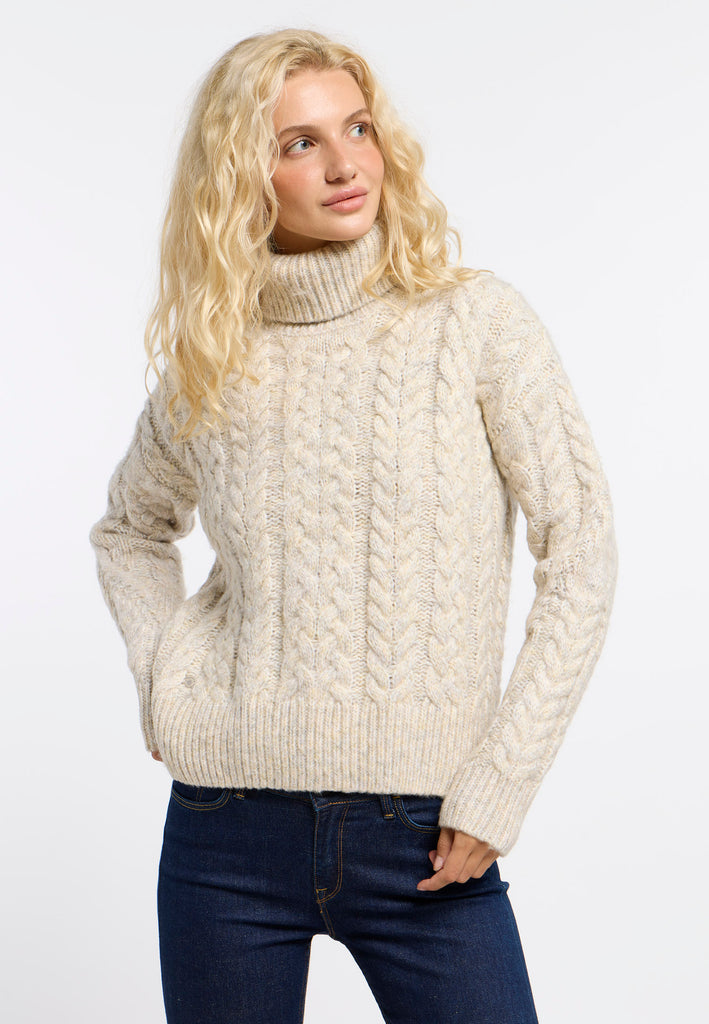 Simply cosy up: the vegan 'JANNA SHORT' jumper from invites you to do just that. With its soft, warm knitted material with a cable knit pattern, high turtleneck and wide cut, it is not only cosy, but also bang on trend