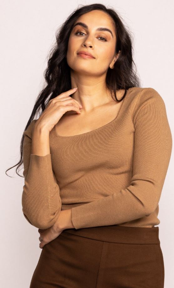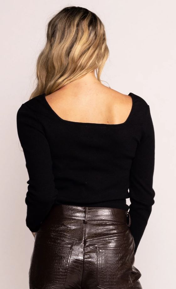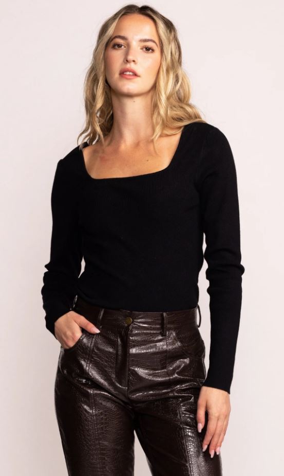 A square shape neckline is always classic and elegant. The Elanor sweater will be perfect for those quick, simple and stylish date nights.