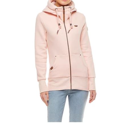 Vegan sweatshirt jacket with a high-cut hood with a drawstring