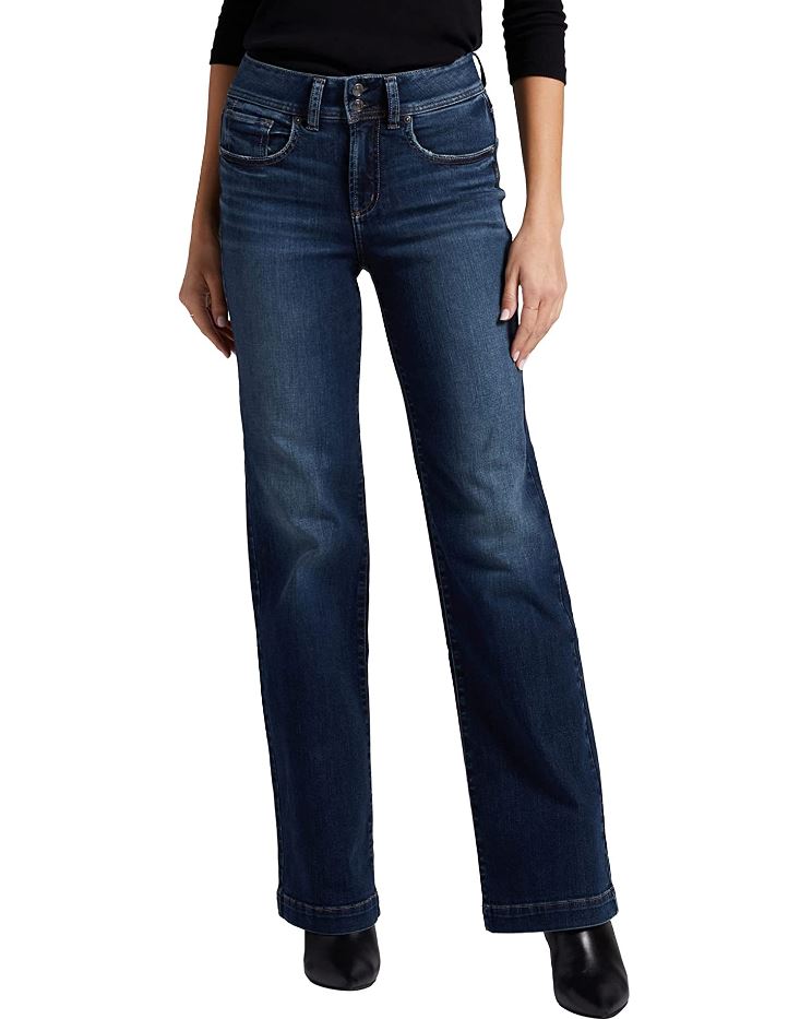 The Silver® Jeans Co. Avery High-Rise Trouser Leg Jeans L94905EGX347 is designed to flatter curvy body types with a smaller waist and fuller hips.