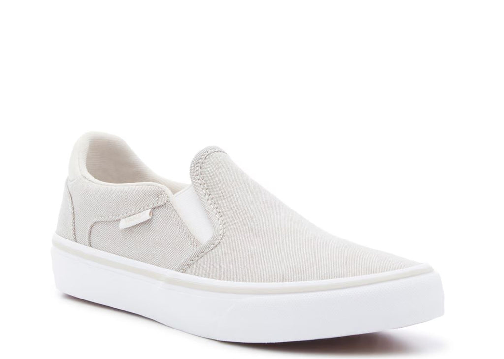 This pair rocks everything you love about the classic Asher sneaker from Vans and upgraded with an extra plush footbed. Don't be afraid to take long walks in this slip-on, it has you covered!