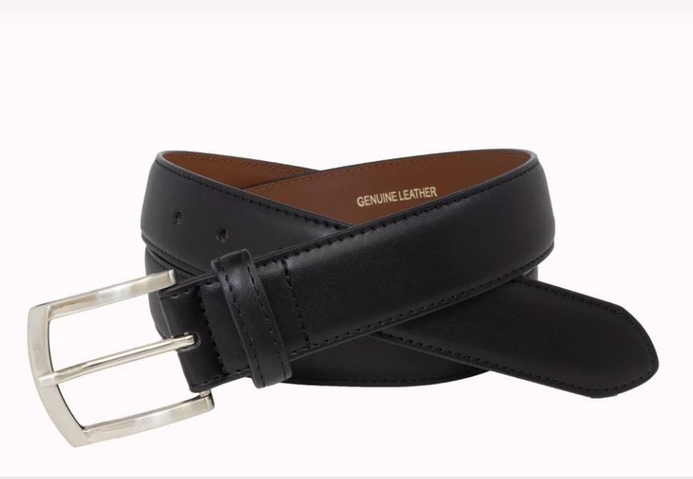 This 35 mm Men's overside leather dress belt has a smooth single stitched finished with a sleek nickel buckle.