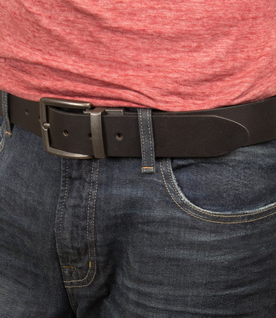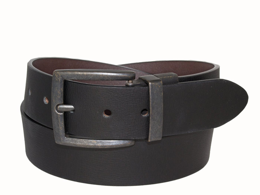 38MM Men's Genuine Leather Reversible Belt With Matte Black Finish Twist Reversible Harness Buckle