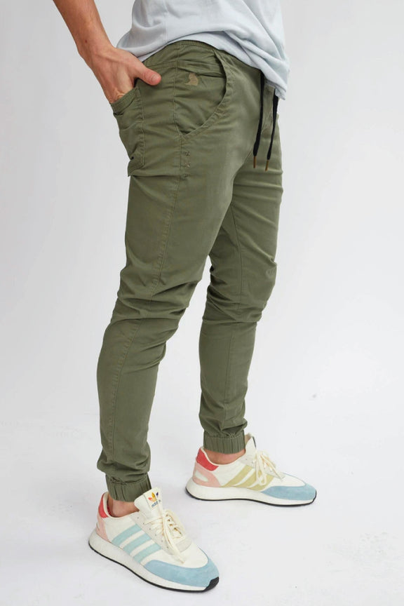 The new seasonal Chino Jogger 2.0 is made of a lightweight durable fabric with a soft touch, features our signature patched back pockets, tapered fit which starts looser around the hips and slims down to the ankle with an elastic cuff and waist.