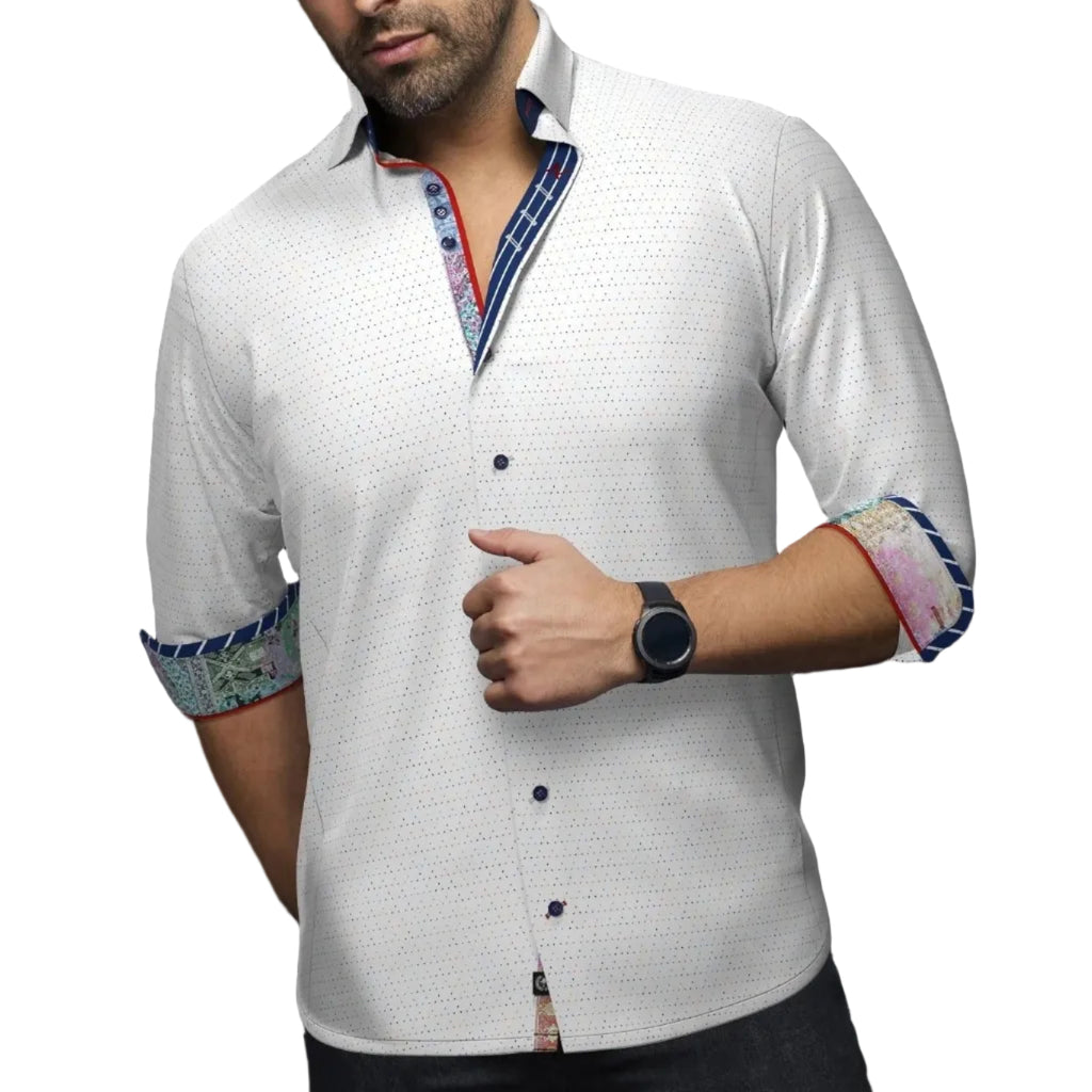 Shirt 98% cotton and 2% Spandex for optimum comfort. Distinguish yourself with contrasting patterns and sophisticated details. Comfortable with premium stretch cotton fabric.