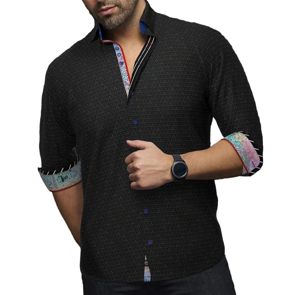 Elegant Ceramic button on sleeve placket, Au Noir signature