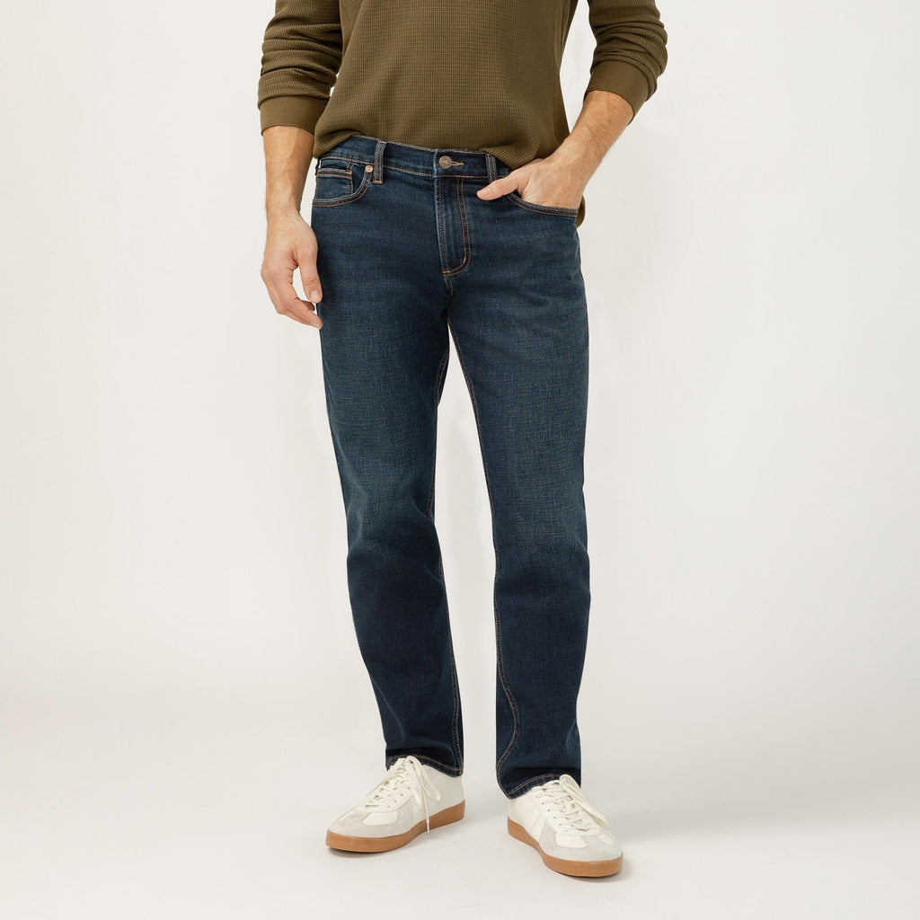 The Eddie jean is a modern slim straight leg, now crafted with soft, durable Luxe Heritage denim. Sitting at the waist, it features a relaxed fit through the hip and thigh for extra comfort, paired with a slim straight leg opening for a streamlined look.
