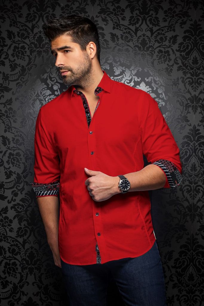 Men's casual dress shirt. Stand out with contrasting patterns and sophisticated details. Comfortable with high-end stretch cotton fabric.