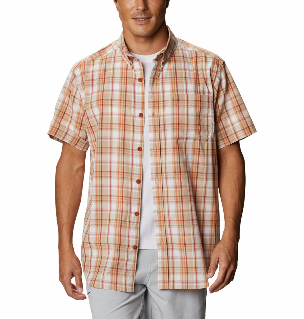 This crisp 100% cotton button-up shirt has the kind of clean style and soft, durable comfort that travels from trail to town with ease; it features a single stash pocket at left chest and a variety of earth-inspired solids and plaids.