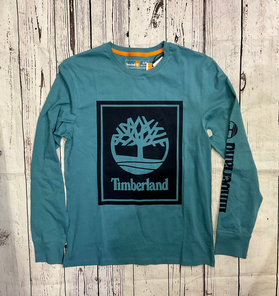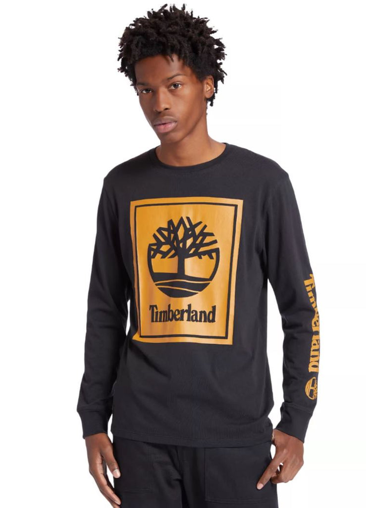Cultivate a throw-back look with the Timberland® Long Sleeve Stack Logo Tee. The pullover crew T-shirt is crafted from a soft cotton knit with a logo print across the front for a weekend-ready look.