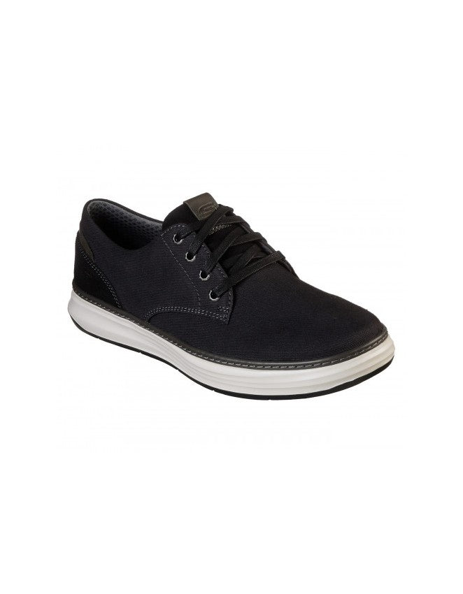 La chaussure Skechers Moreno - Ederson est conçue avec une tige en toile souple lavée vintage, une fermeture à lacets et une semelle intérieure en mousse à mémoire de forme refroidie par air.