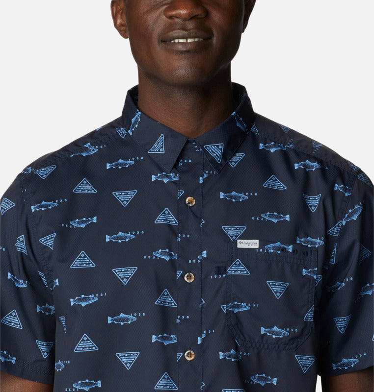 Chemise de camp Columbia Super Slack Tide, tissu léger et anti-transpiration avec UPF 40 intégré, cette chemise boutonnée est le pilier du confort tout au long de la journée et du style plage.