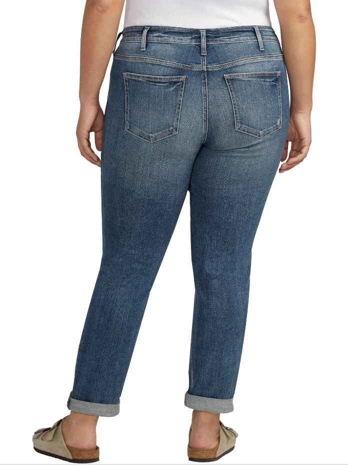 Adoptez un look décontracté avec le jean slim taille mi-haute Boyfriend grande taille W27101EAE217 de Silver® Jeans Co.. Ce modèle est doté d'une ceinture à passants, d'une fermeture boutonnée sur le devant et d'une braguette zippée. Alliance parfaite de style et de fonctionnalité, ce jean vous offre un confort incomparable.