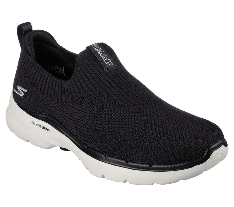 Le modèle de marche à enfiler Skechers GO WALK 6 est doté d'une tige en tricot extensible avec une semelle intérieure Skechers Air-Cooled Goga Mat, une semelle intermédiaire légère et amortissante.