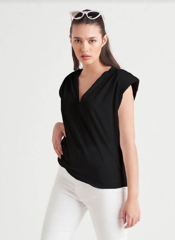 T-shirt à épaules rembourrées avec ruban noir
