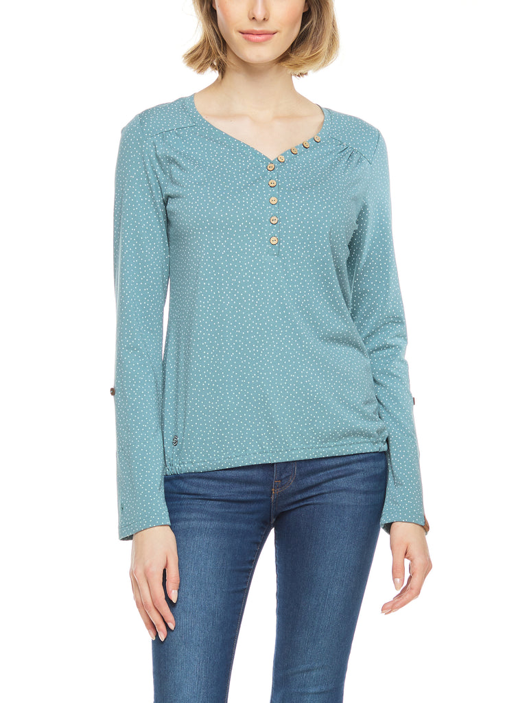 Le t-shirt vegan à manches longues PINCH DOTS de ragwear est un haut confortable et tendance, idéal pour de nombreuses occasions. Sa coupe confortable avec ourlet élastique, sa coupe ample et son mélange de matières douces procurent une sensation de bien-être intense. Les manches longues peuvent être retroussées grâce aux boutonnières. Les volants sur le devant, au niveau des épaules, apportent une touche féminine.