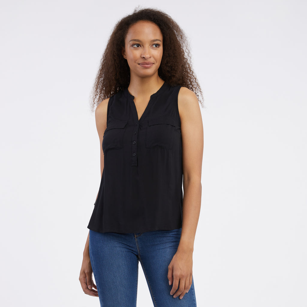 Chemisier d'été végétalien sans manches avec patte de boutonnage et poches poitrine