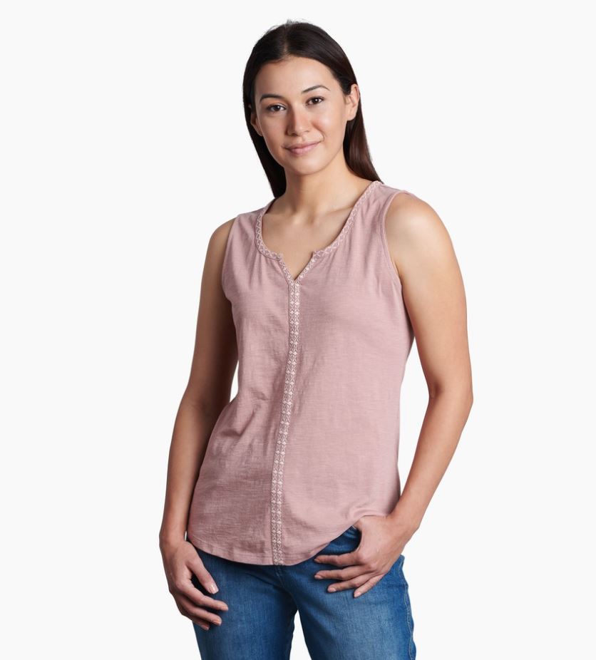 Le débardeur KÜHL SHAY™ pour femme est fabriqué en coton 100 % biologique Wildfibre™. Luxueusement doux, résistant et respirant, ce coton de qualité supérieure vous offre un confort optimal. Une broderie personnalisée et un pli croisé ajoutent une touche d'élégance à ce débardeur d'été incontournable.