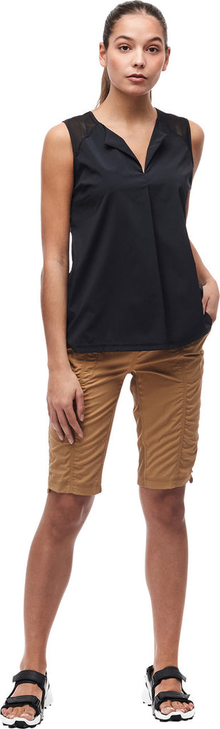 Le haut sans manches STEEK II est confectionné dans un tissu extensible tissé, léger et résistant. Ce tissu extensible dans les deux sens offre une grande liberté de mouvement, sèche rapidement, évacue l'humidité et bénéficie d'un indice UPF 50+. Ces caractéristiques en font un haut polyvalent, idéal pour les voyages et diverses activités de plein air.
