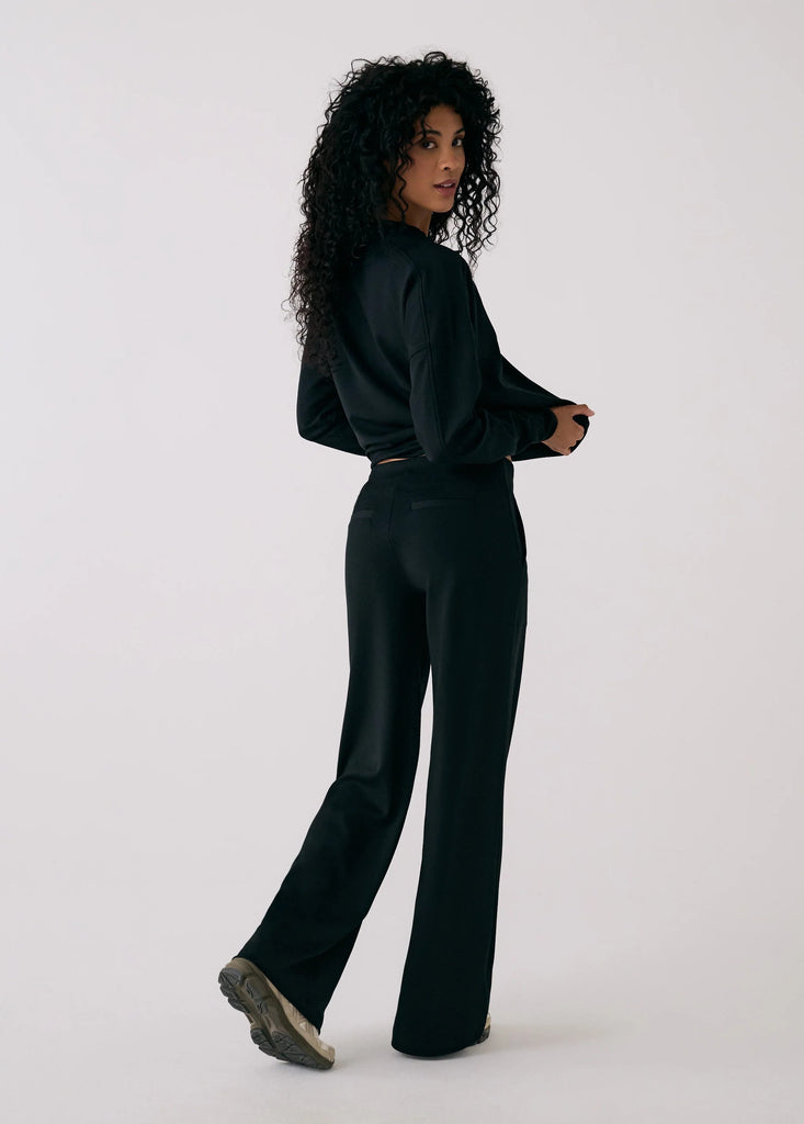 The Flow Wide Leg Pants feature a soft, pull-on waistband and a mid-rise fit that sits just right. With roomy legs, side pockets, and welt back pockets, they bring casual chic to whatever your day looks like: lounging, working, or heading out.