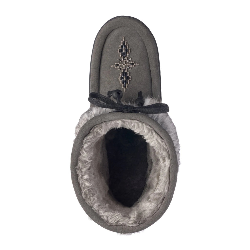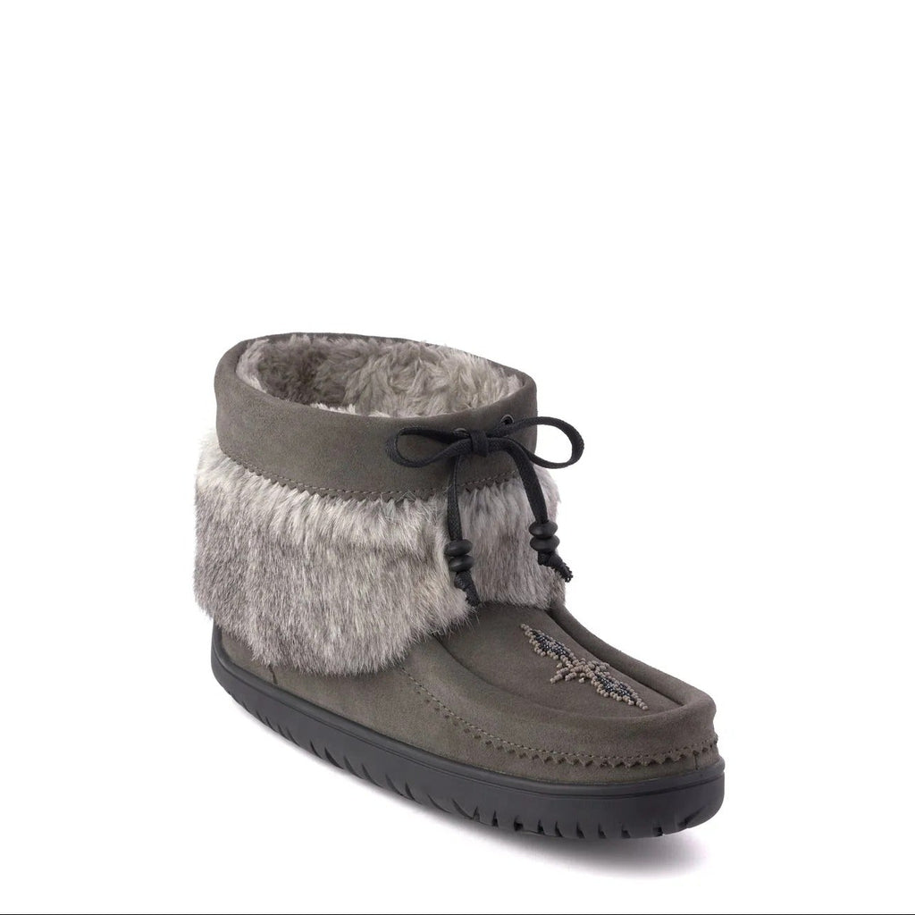 Part of the Solstice collection, the stunning Solstice Ankle Mukluk shines through winter, never sacrificing grace for practicality. Made of carefully selected cowhide suede trimmed with high-quality rabbit fur, the Solstice Ankle Mukluk is based on our iconic Keewatin mukluk silhouette. With a cozy sheepskin-lined footbed, you'll reach for this beauty — rated to -32C — time after time.