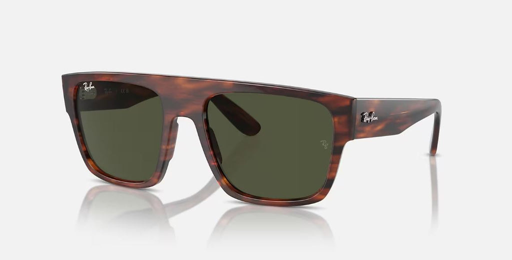 Lunettes de soleil Drifter de Ray Ban, monture Havane rayée avec verres verts.