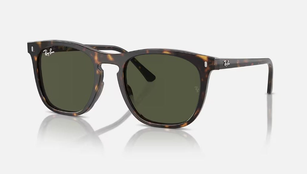 RB2210 sunglasses by Ray Ban, with a polished Havana frame, and green lenses.