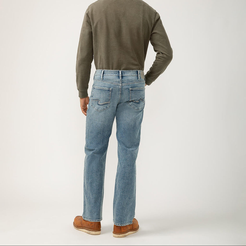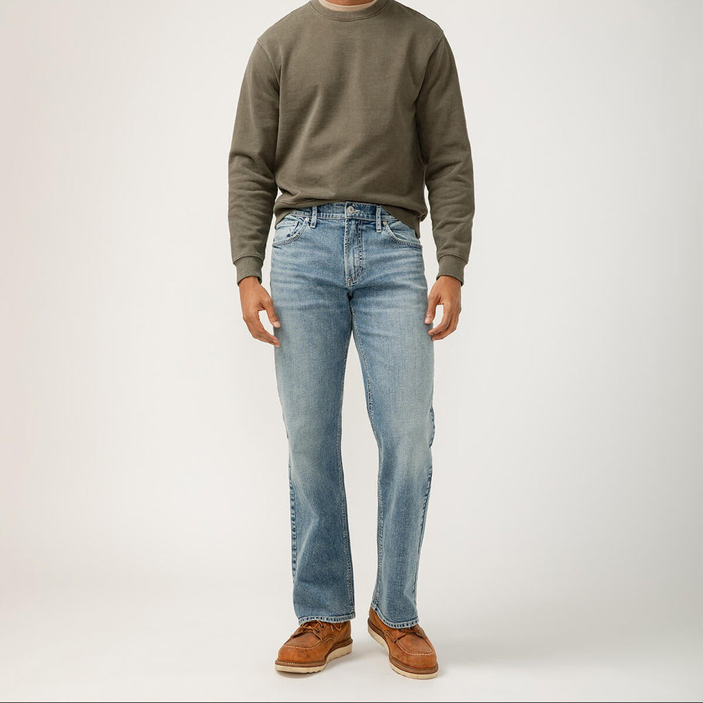 Jean coupe décontractée avec un délavage indigo moyen