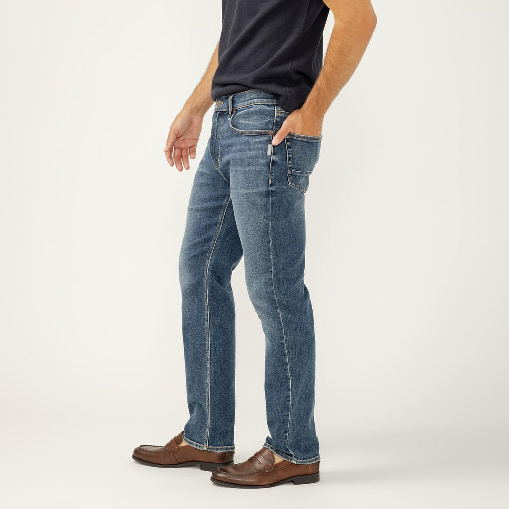 Machray is a modern take on the athletic fit jean, featuring a longer saddle and a slim-yet-spacious fit through the hip and thigh. Built for a close-but-comfortable sporty look, it’s finished with a classic straight leg opening for a sleek finish.