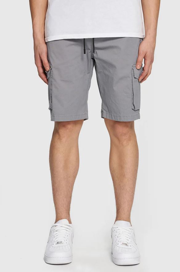 Short cargo en sergé avec taille élastique et cordon de serrage réglable. Poches latérales, poches cargo plaquées avec fermeture à bouton-pression sur les cuisses.