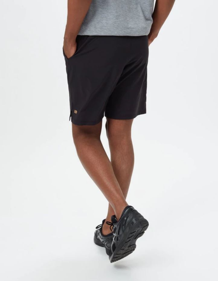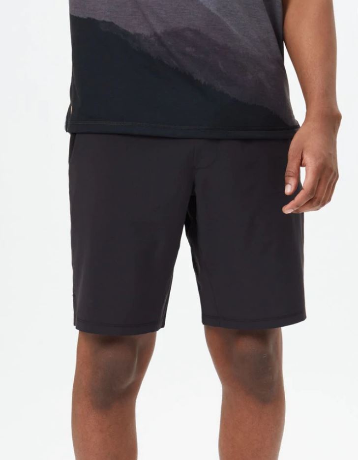 Short à enfiler, taille élastique avec cordon de serrage, fausse braguette sur le devant, poche zippée sur le devant pour la monnaie, fentes latérales à l'ourlet, entrejambe de 10 pouces