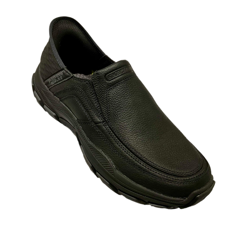 Enfilez simplement les Skechers Hands Free Slip-ins® Relaxed Fit® : Respected - Elgin. Dotées de notre Heel Pillow™ exclusif, ces chaussures à bout mocassin spacieux sont dotées d'une tige en cuir avec empiècement moulé au talon TOUCHLESS FIT® Skechers Slip-ins®, d'une semelle intérieure confortable et d'une semelle extérieure en caoutchouc Goodyear®.