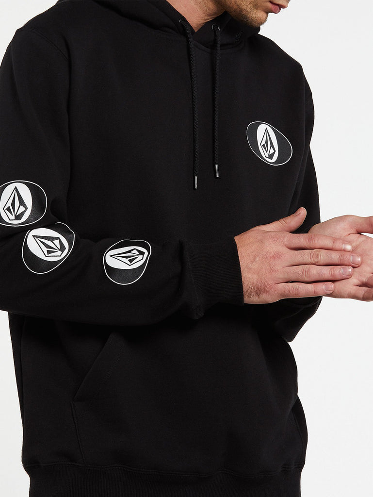 Broderie en pierre sur la capuche et étiquette tissée sur la couture latérale