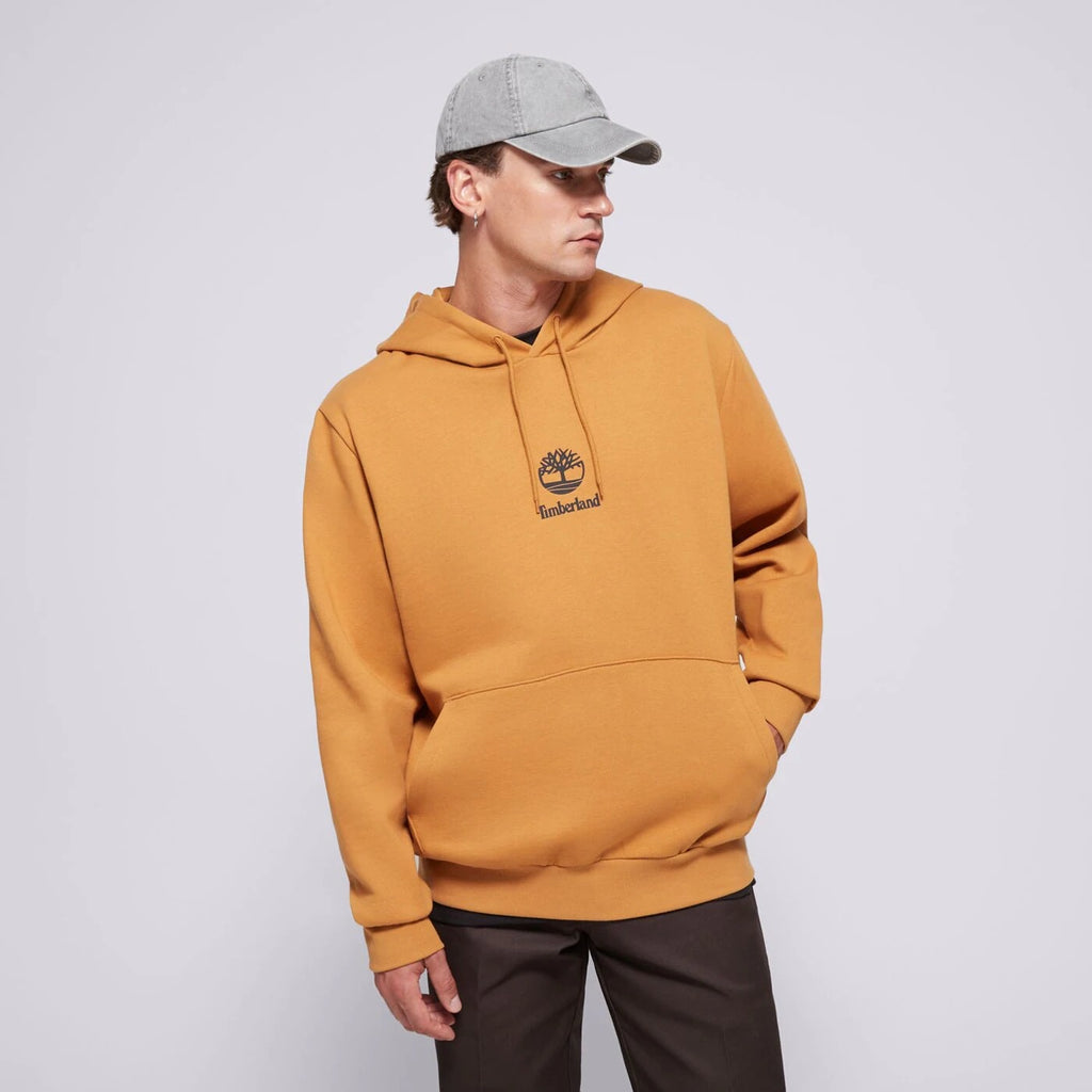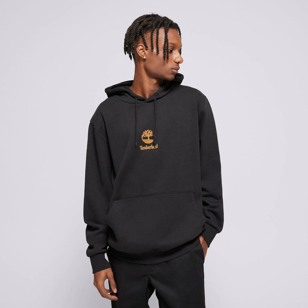 This warm and comfortable hoodie sweatshirt is made of an 80/20 cotton to polyester blend, and has a Timberland logo print branding.