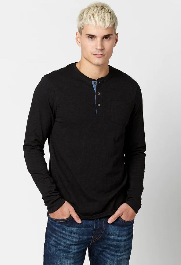 Confectionné en jersey de coton, le Kirock présente un effet flammé sur toute sa surface. Col Henley boutonné classique. Poche poitrine plaquée.