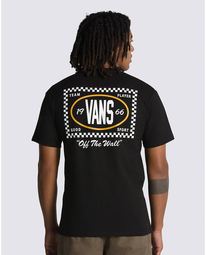 Le t-shirt Team Player Checkerboard est fabriqué à partir d'un coton plus épais et comporte un petit graphique sérigraphié sur le devant et un graphique plus grand dans le dos.