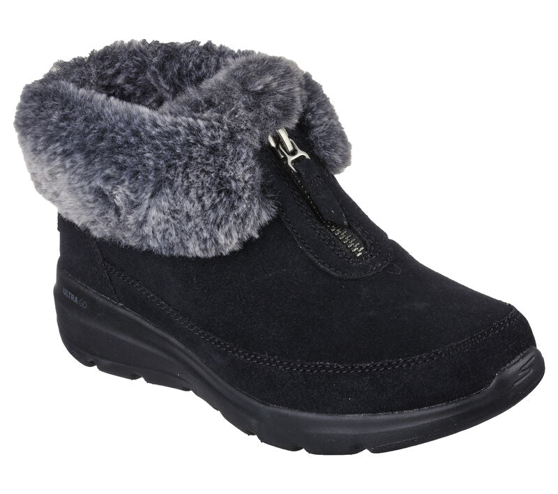 Restez au chaud tout au long de la saison avec les Skechers On-the-GO® Glacial Ultra - Sweet Vibes. Ces bottines zippées pour temps froid sont dotées d'une tige en daim traité 3M® Scotchgard® avec un col et une doublure en fausse fourrure, d'une semelle intérieure Skechers Air-Cooled Goga Mat™ et d'une semelle intermédiaire légère ULTRA GO®.