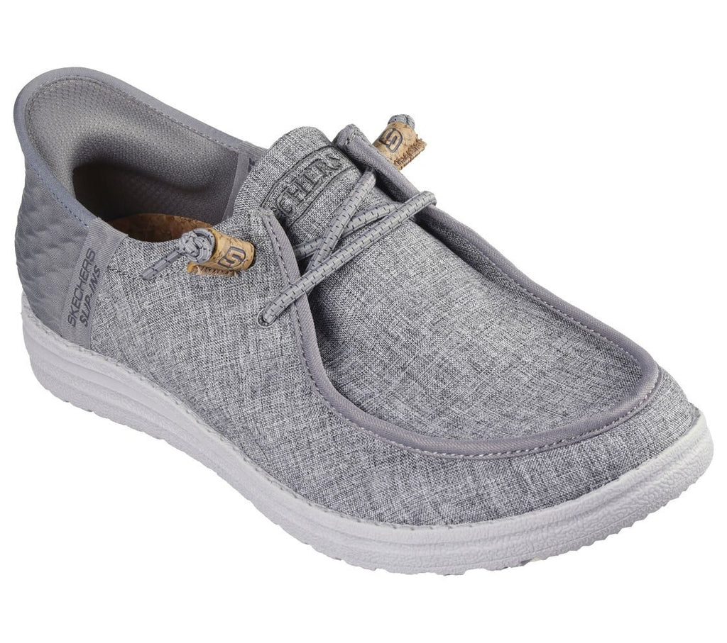 Enfilez simplement les Skechers Hands Free Slip-ins® Relaxed Fit® : Melson - Vaiden. Dotées de notre Heel Pillow™ exclusif, ces chaussures vegan à bout mocassin sont dotées d'un empiècement moulé au talon Skechers Slip-ins® avec une tige en sergé, de lacets décoratifs ornés de liège et d'une semelle intérieure confortable et coussinée en liège Luxe Foam®.