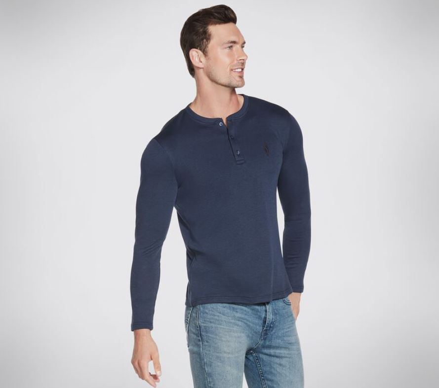 Détendez-vous avec style grâce à ce classique incontournable du pull Henley en piqué GOknit™ de Skechers Apparel. Ce modèle est confectionné en piqué GOknit™ doux en coton mélangé, avec un col ras du cou, des manches longues et une patte de boutonnage sur le devant.