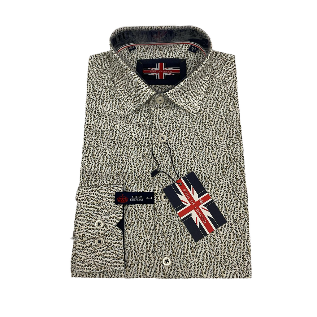 Chemise classique en coton à manches longues Soul of London, extensible dans les 4 sens.