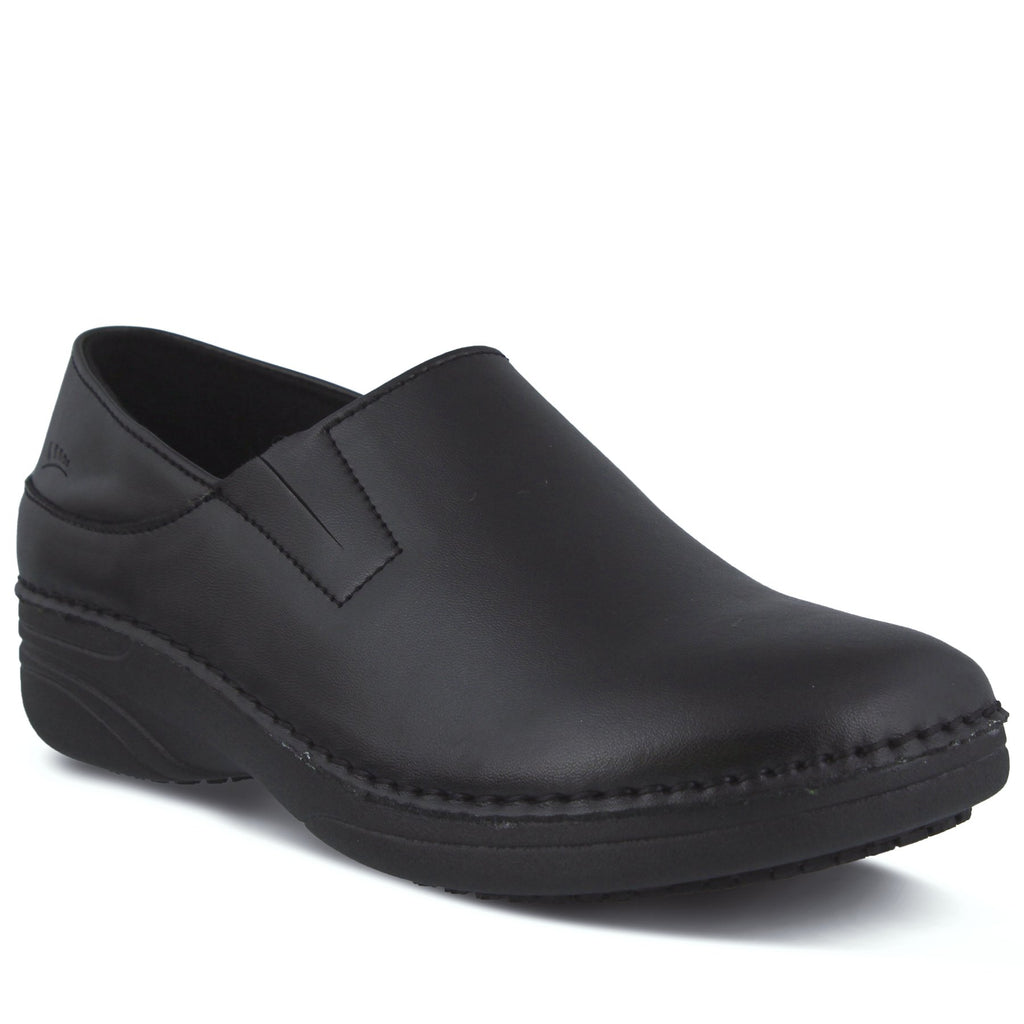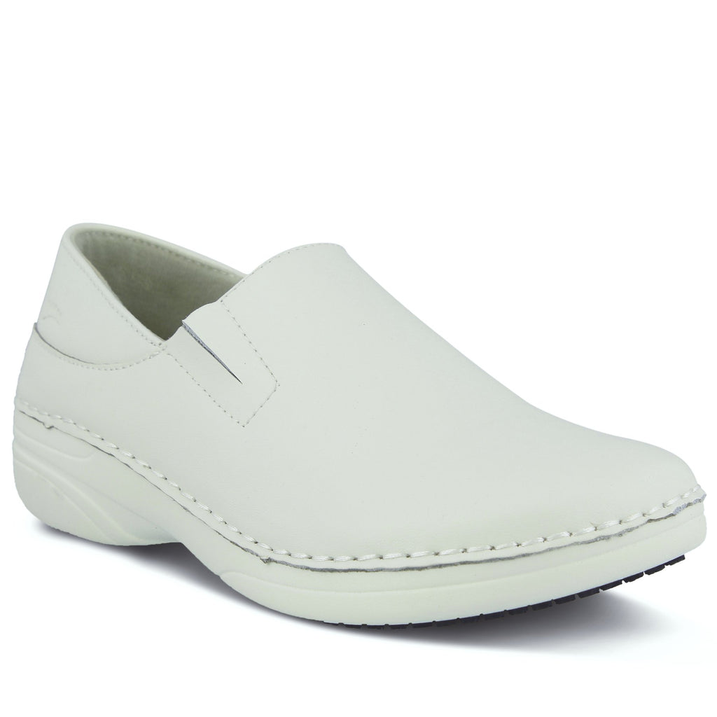 Mocassin à enfiler en cuir avec détails élastiques latéraux.