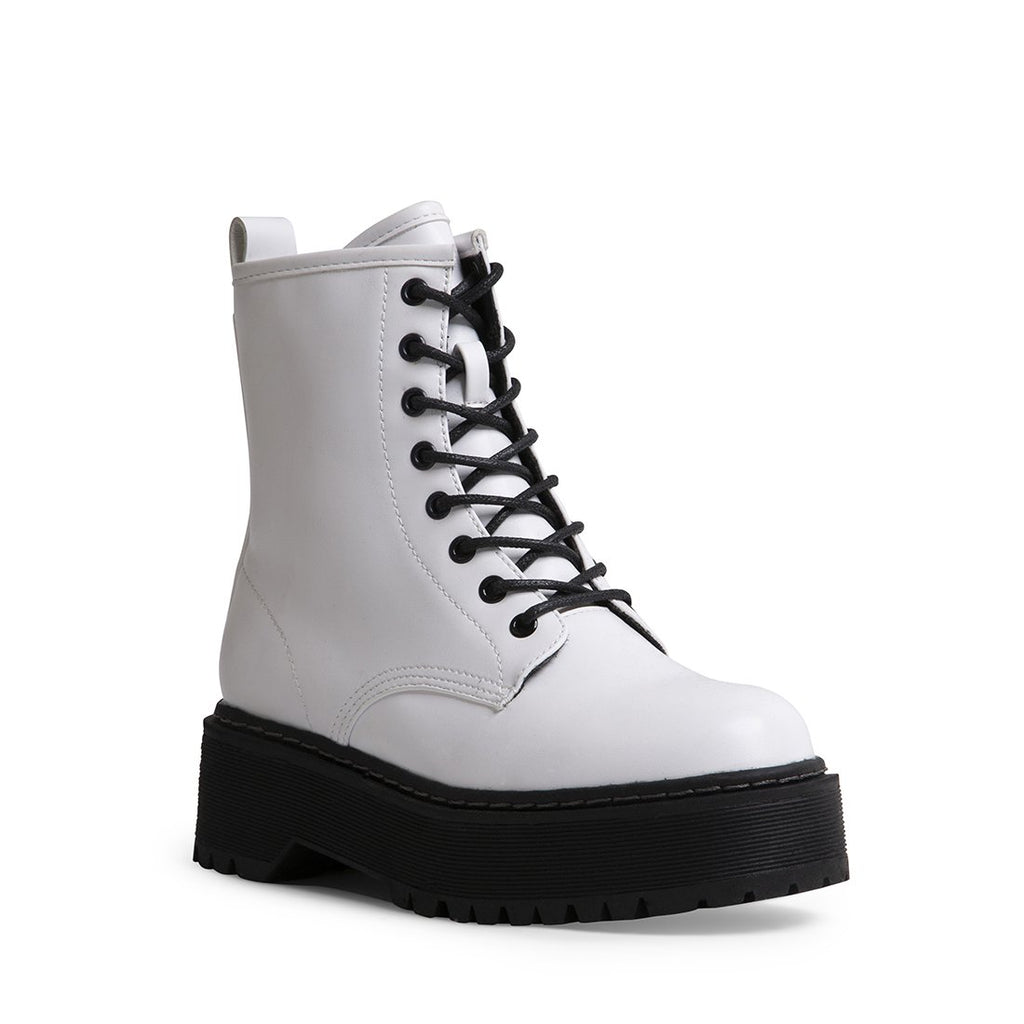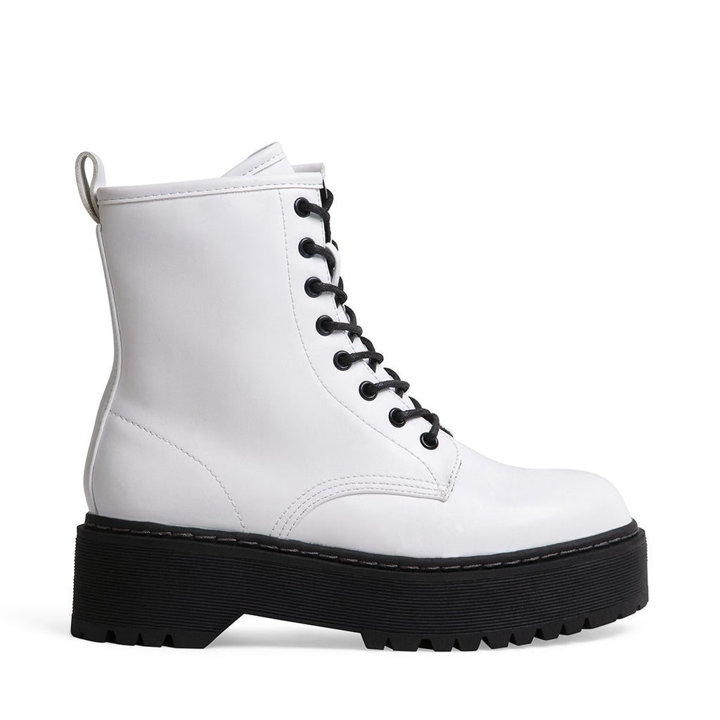 Avec une tige subtilement raccourcie et un petit plus de hauteur, BETTYY propose une version actuelle de la botte de combat classique, parfaite pour les looks punk, gothique et grunge !