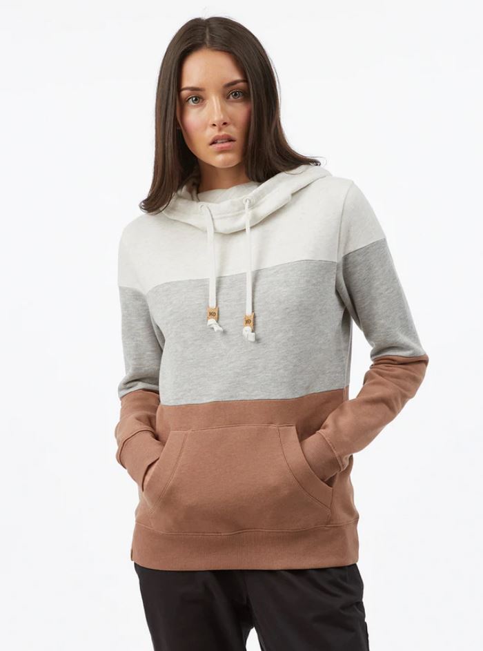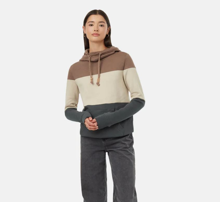 The women's Banshee hoodie stands out with its trendsetting colourblock design, it's our streetwear take with a sustainable twist.