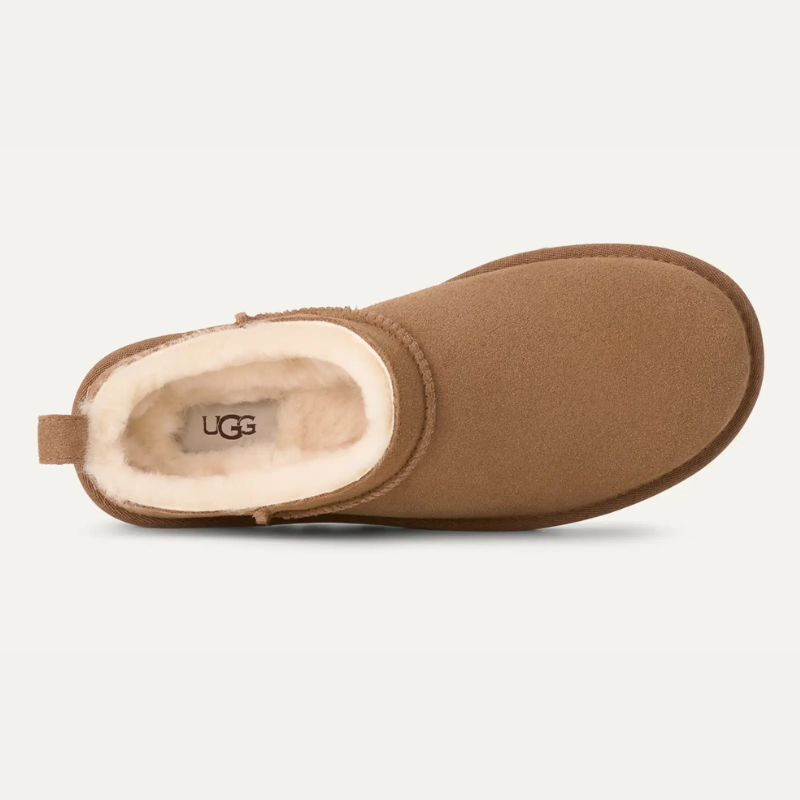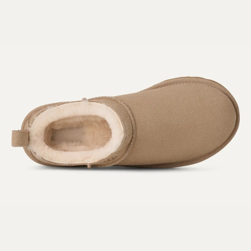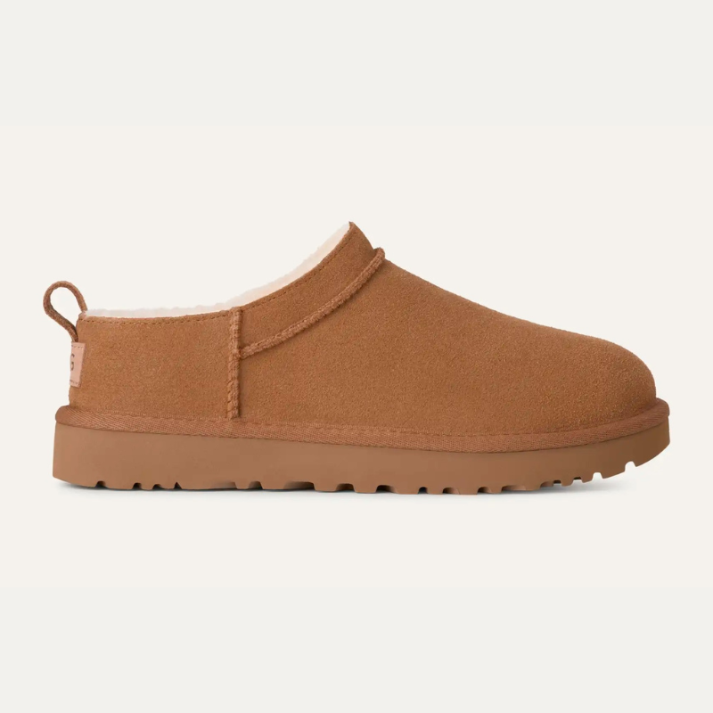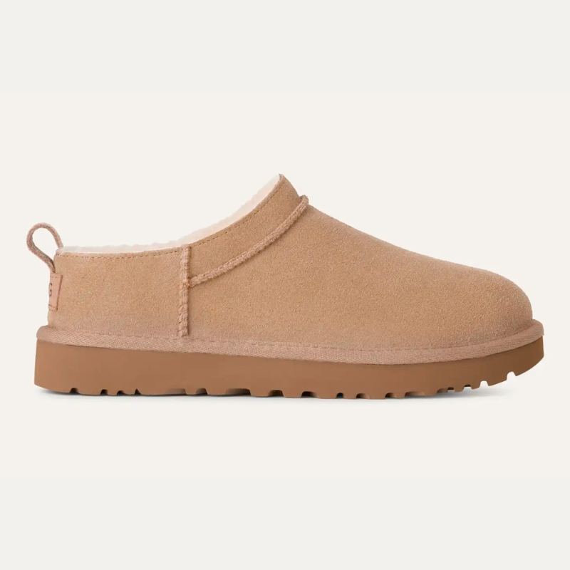 "Our Classic Micro reimagines our fan-favorite Classic Boot with a new, low-profile design (and high-profile comfort). It has a genuine suede upper lined with mega-soft sheepskin that naturally regulates temperature, so you can wear socks — or not. The lightweight sugarcane EVA outsole delivers effortless support and adds that easy slipper feeling to every out-of-the-house venture."